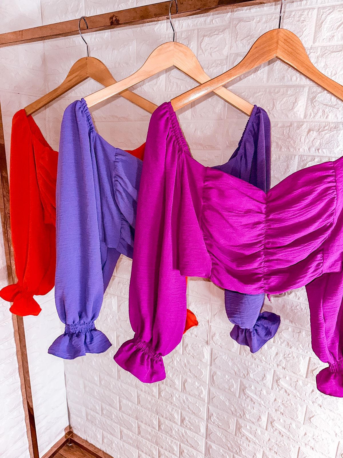Cropped Manga Longa Longa, franzido na frente e com Bojo